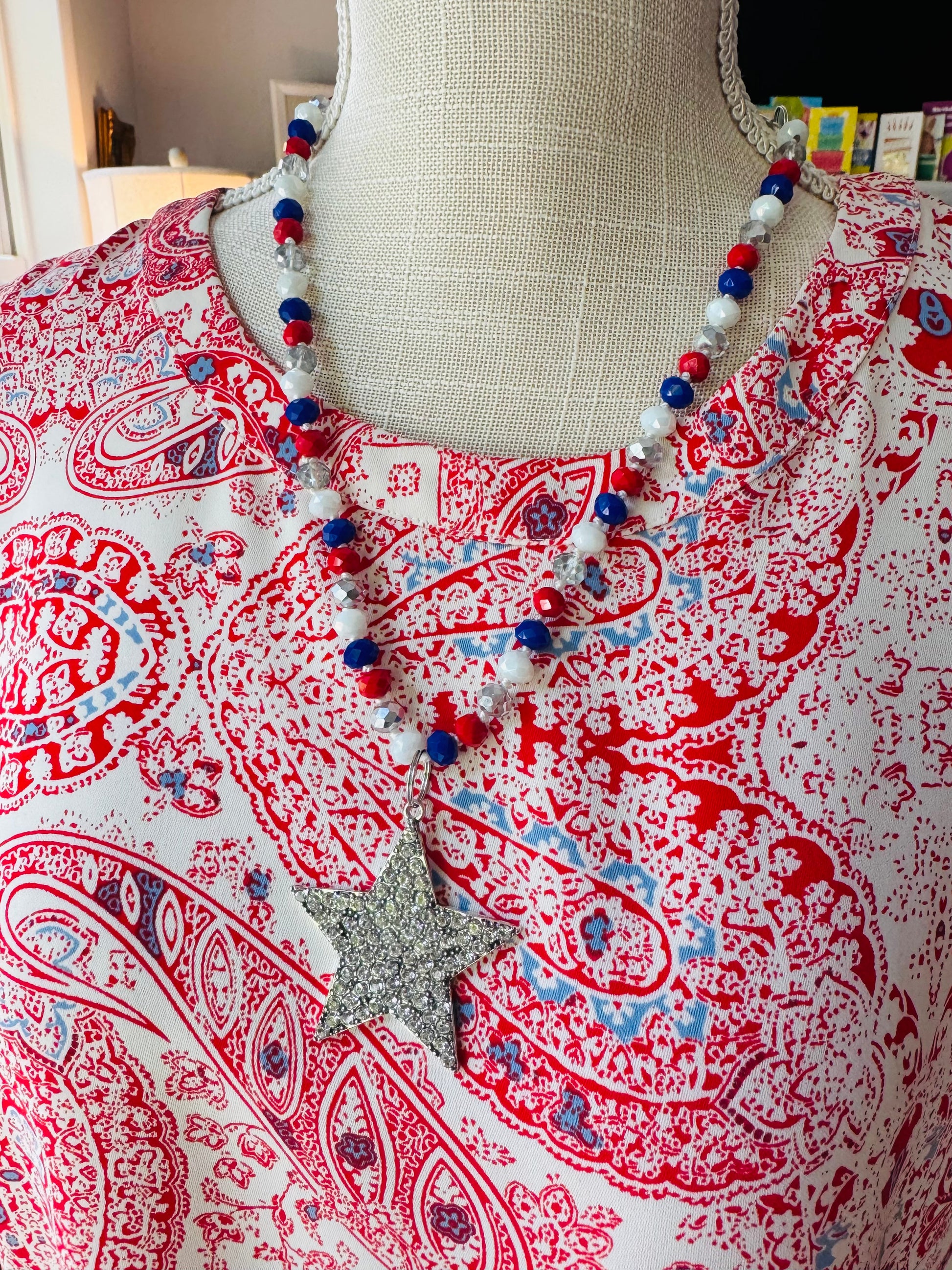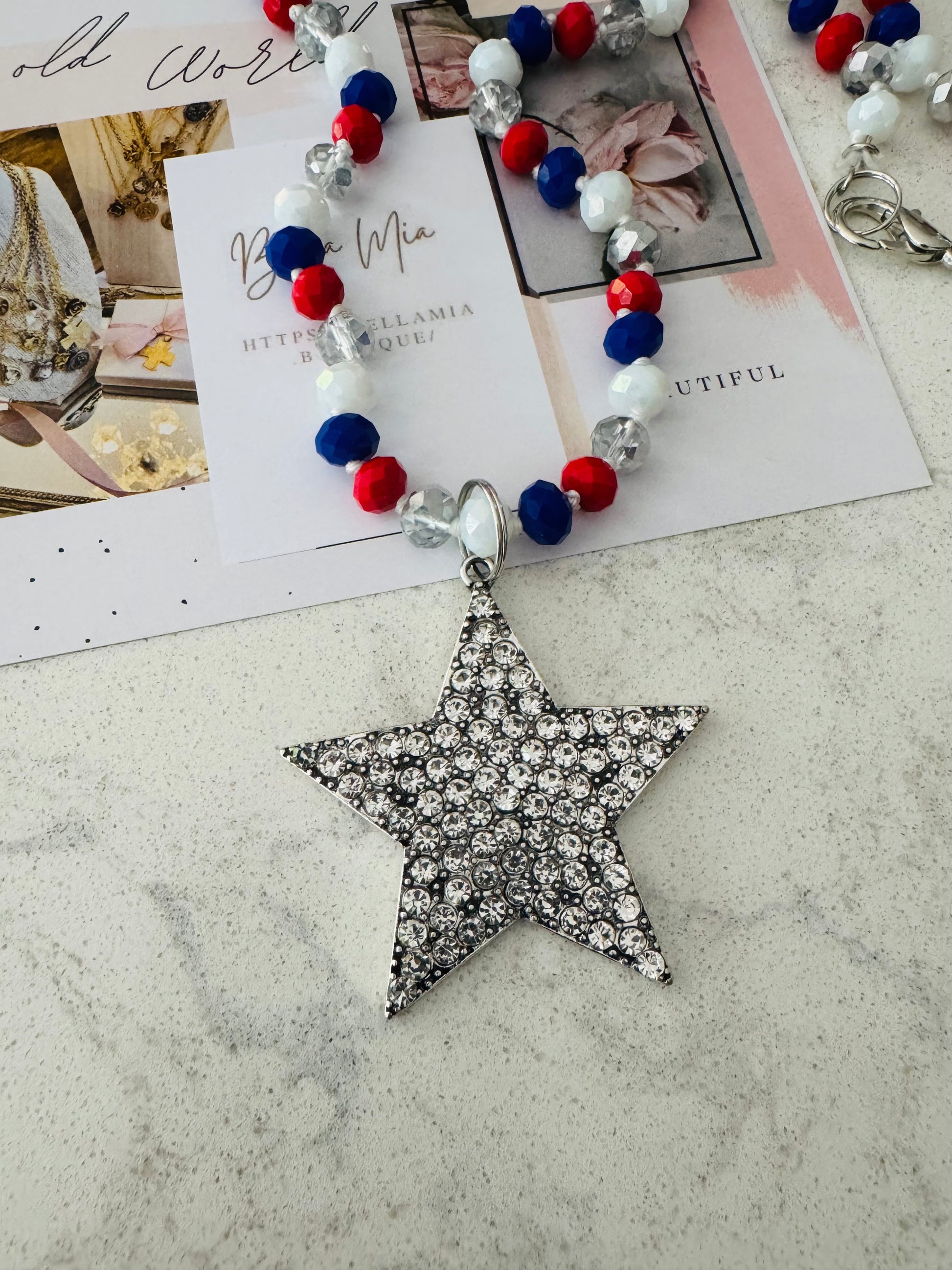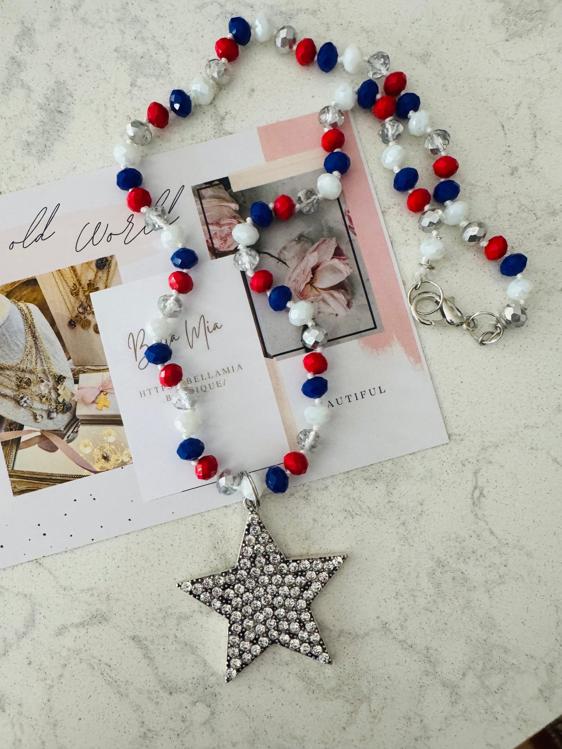 Beaded crystal star necklace—perfect for shining bright and celebrating the stars and stripes.