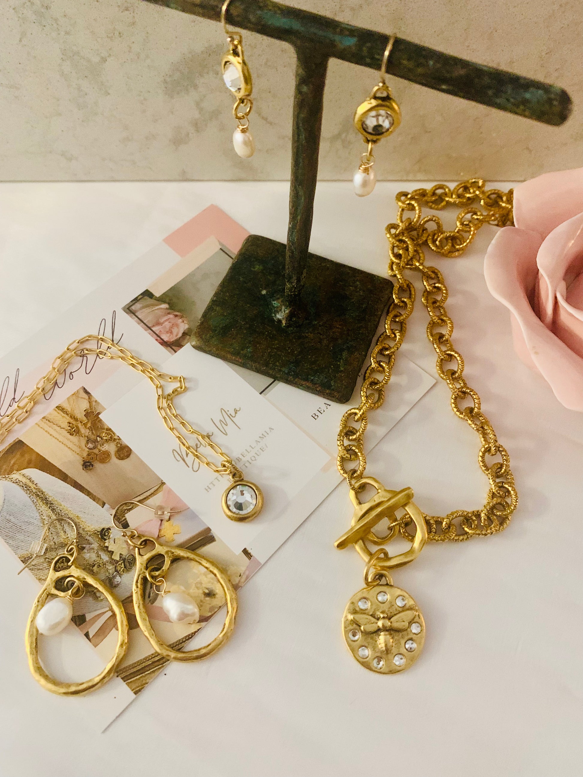 Featured with Dainty Gold Paper Clip Chain. Brass,with 12k antiqued gold finish . 17”,18” and 19” 2 “ extender.