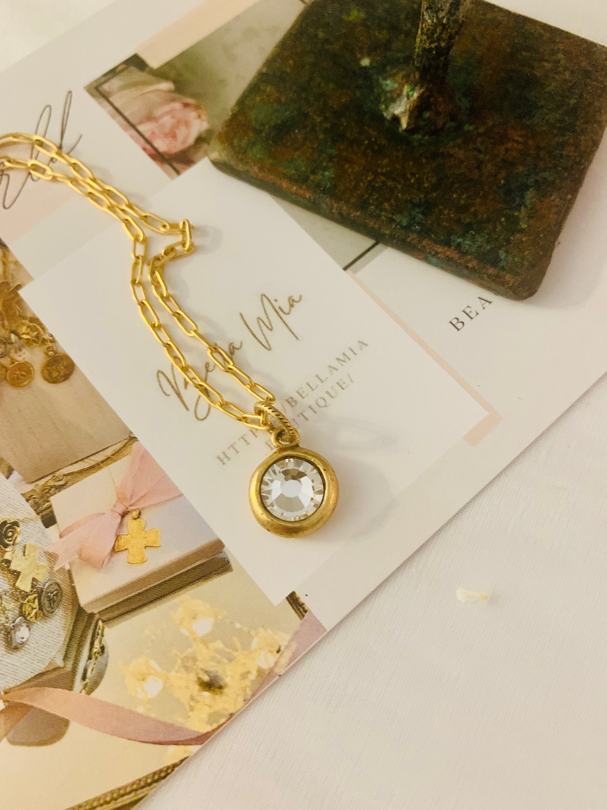 Swarovski Crystal , Round cut set in Pewter,dipped in 12k Antique Gold giving gorgeous old world Patina with soul!