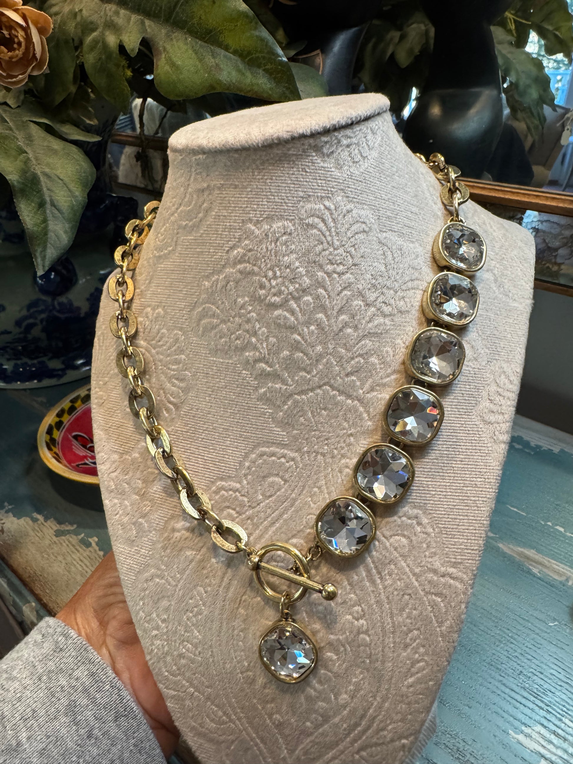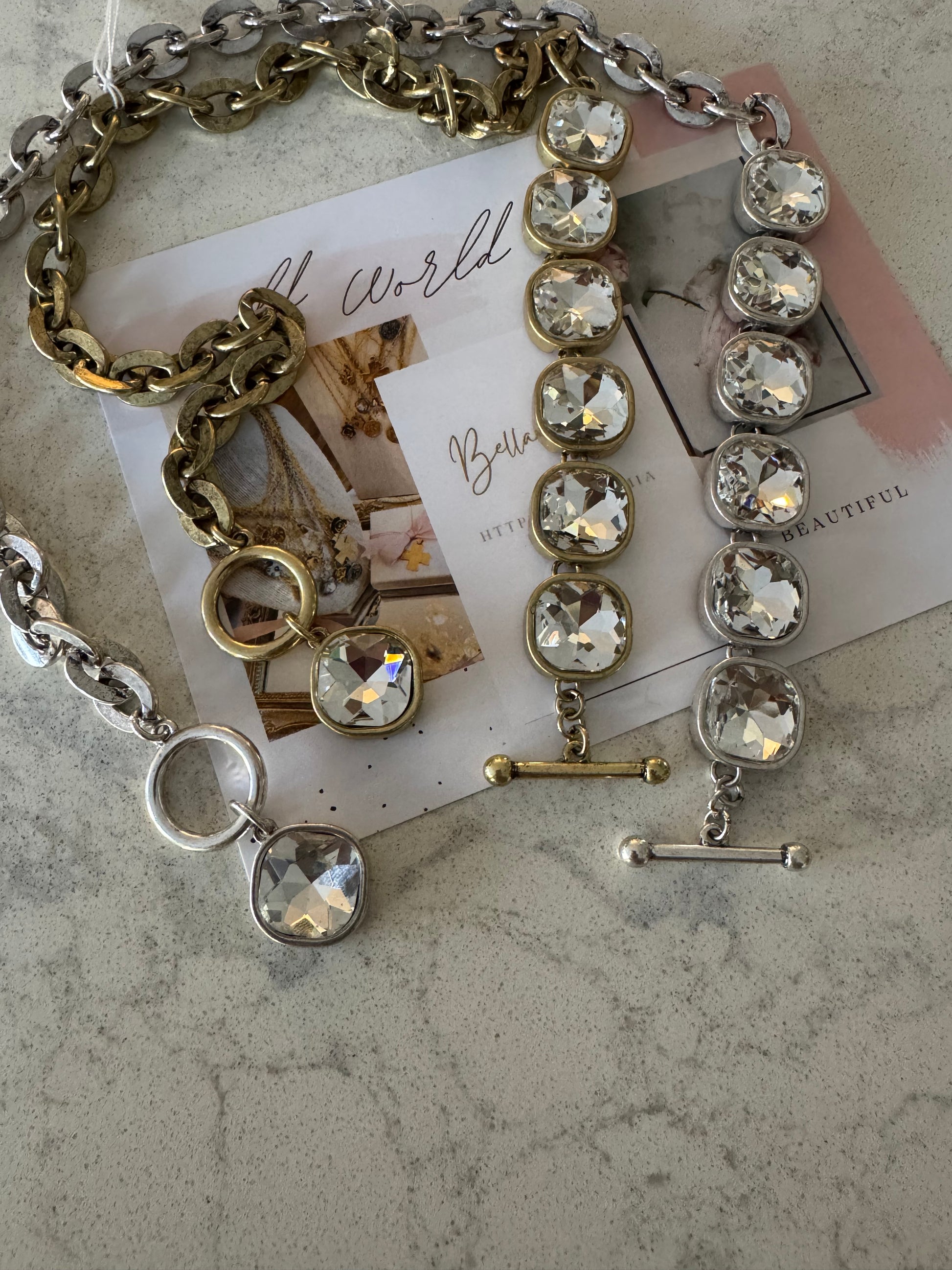 Asymmetrical large crystal necklace. Comes in Silver&Gold.