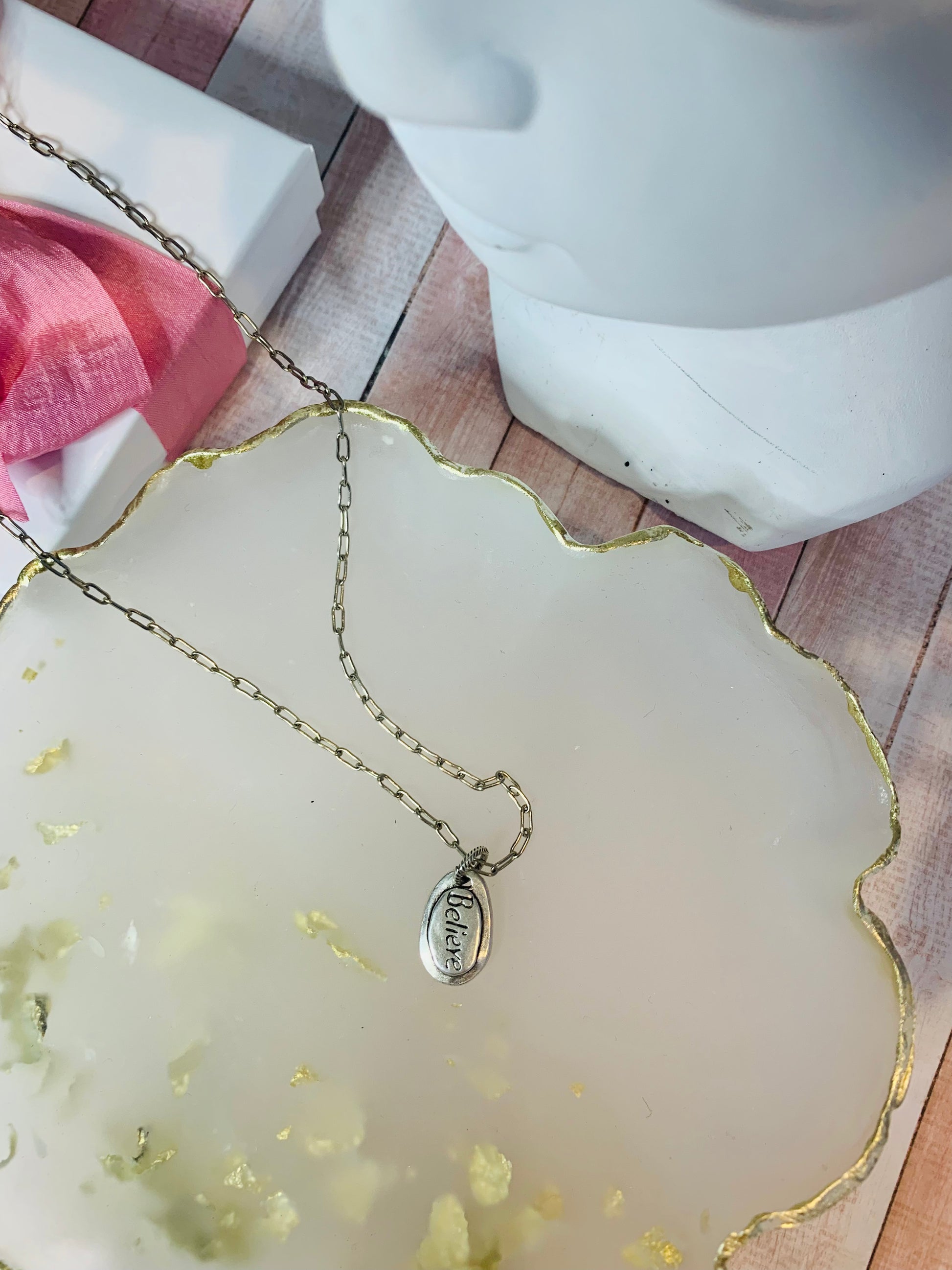 Silver - Dainty Silver Paper Clip Chain. Brass, Dipped in Antiqued Pewter Finish. 17",18",19" with 2" Extender