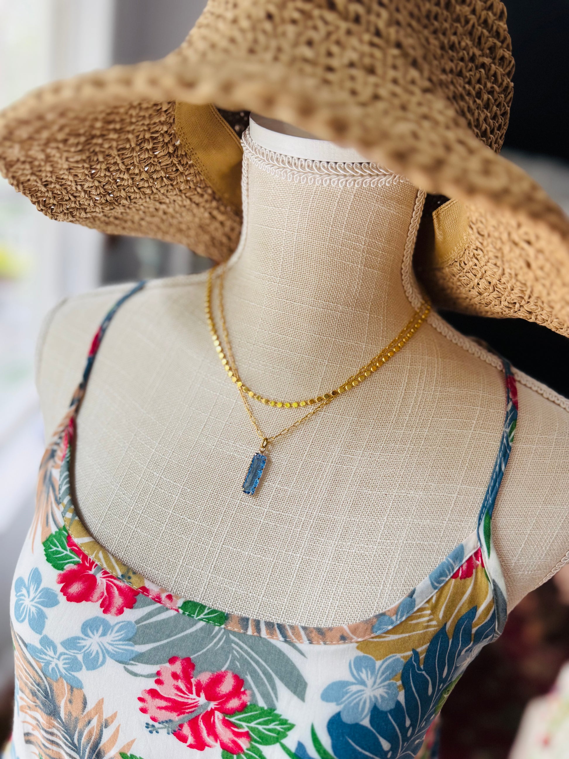 This striking Grey blue rectangle crystal necklace is the perfect touch of sophistication and sparkle. Dainty, yet Bold with her pop of Color.