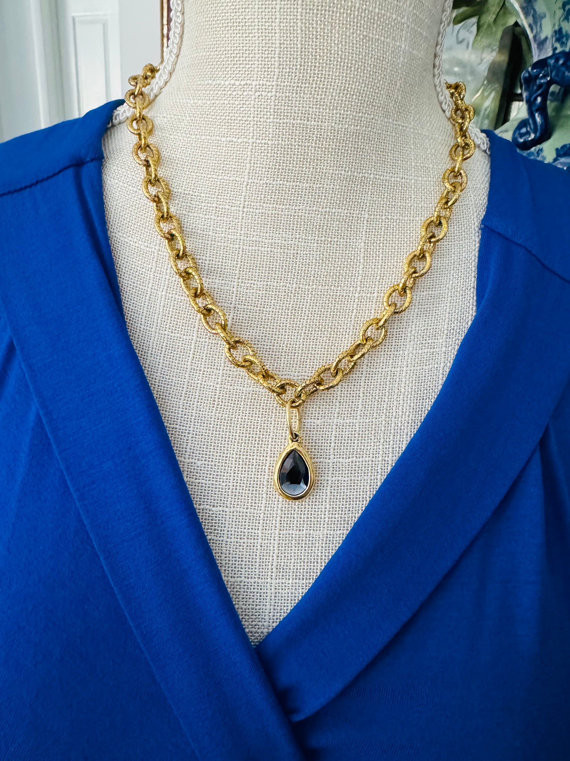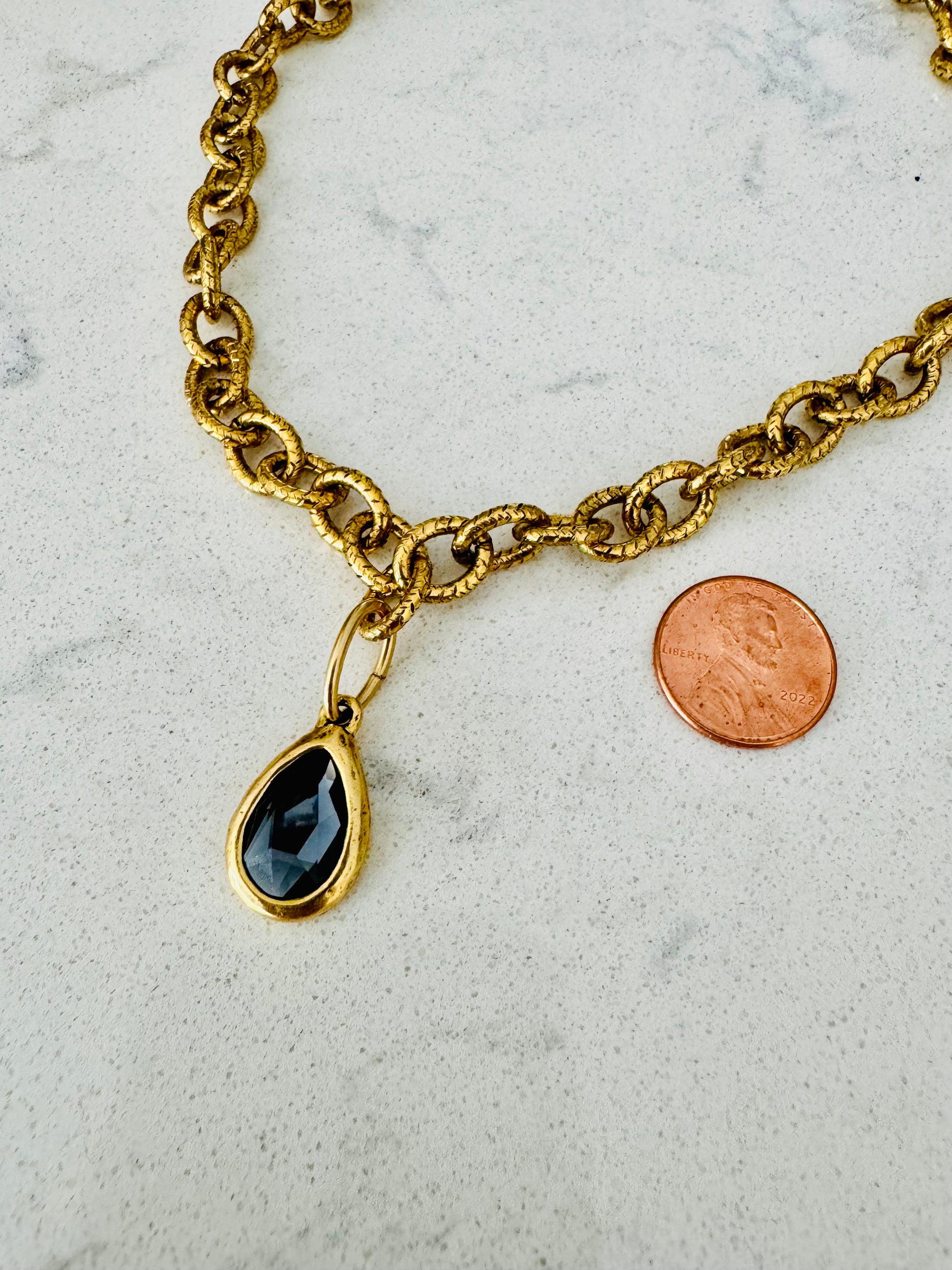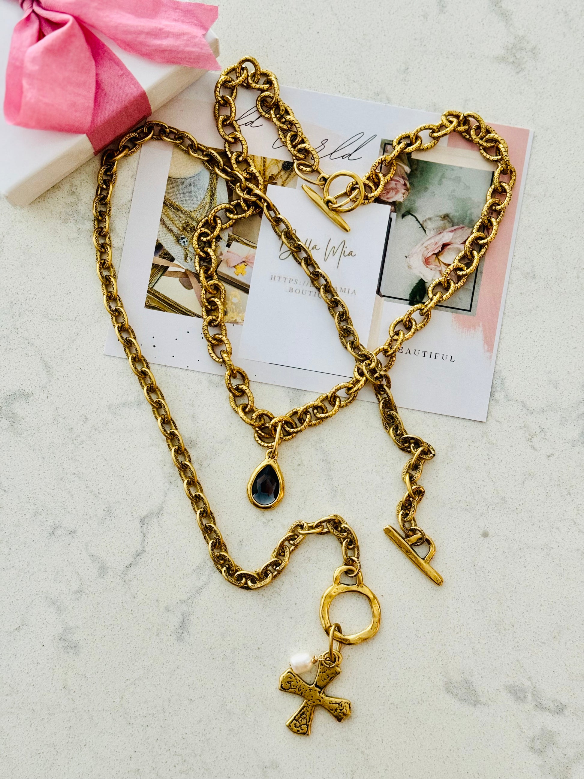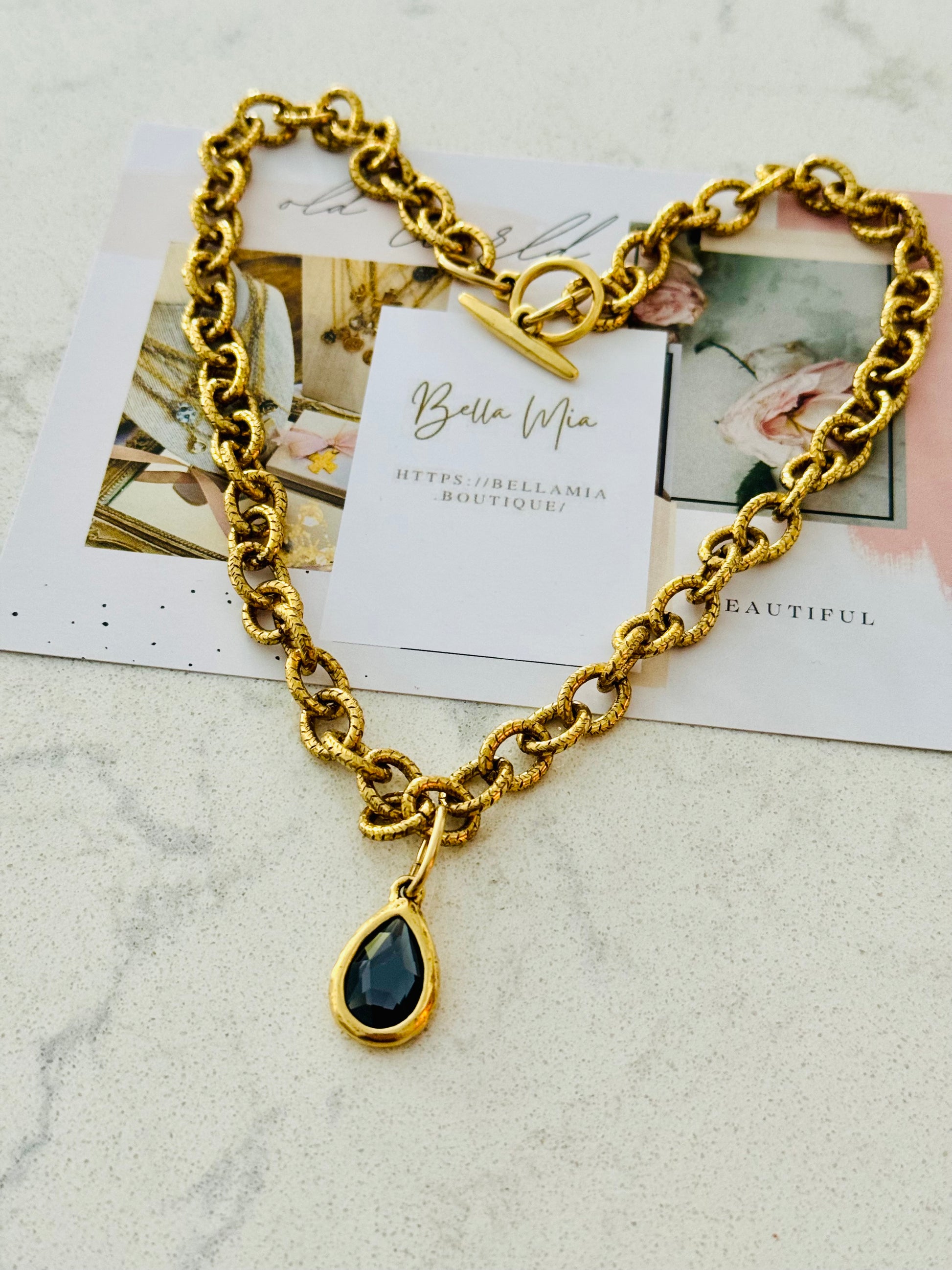 I’m so Excited to be Introducing our New Chunky Gray, Blue Graphite Swarovski Crystal for ‘Galantines Day’ . Here she is paired with this Chunky Steel Necklace that has been dipped in 12k Antique Gold giving her her unique patina!
