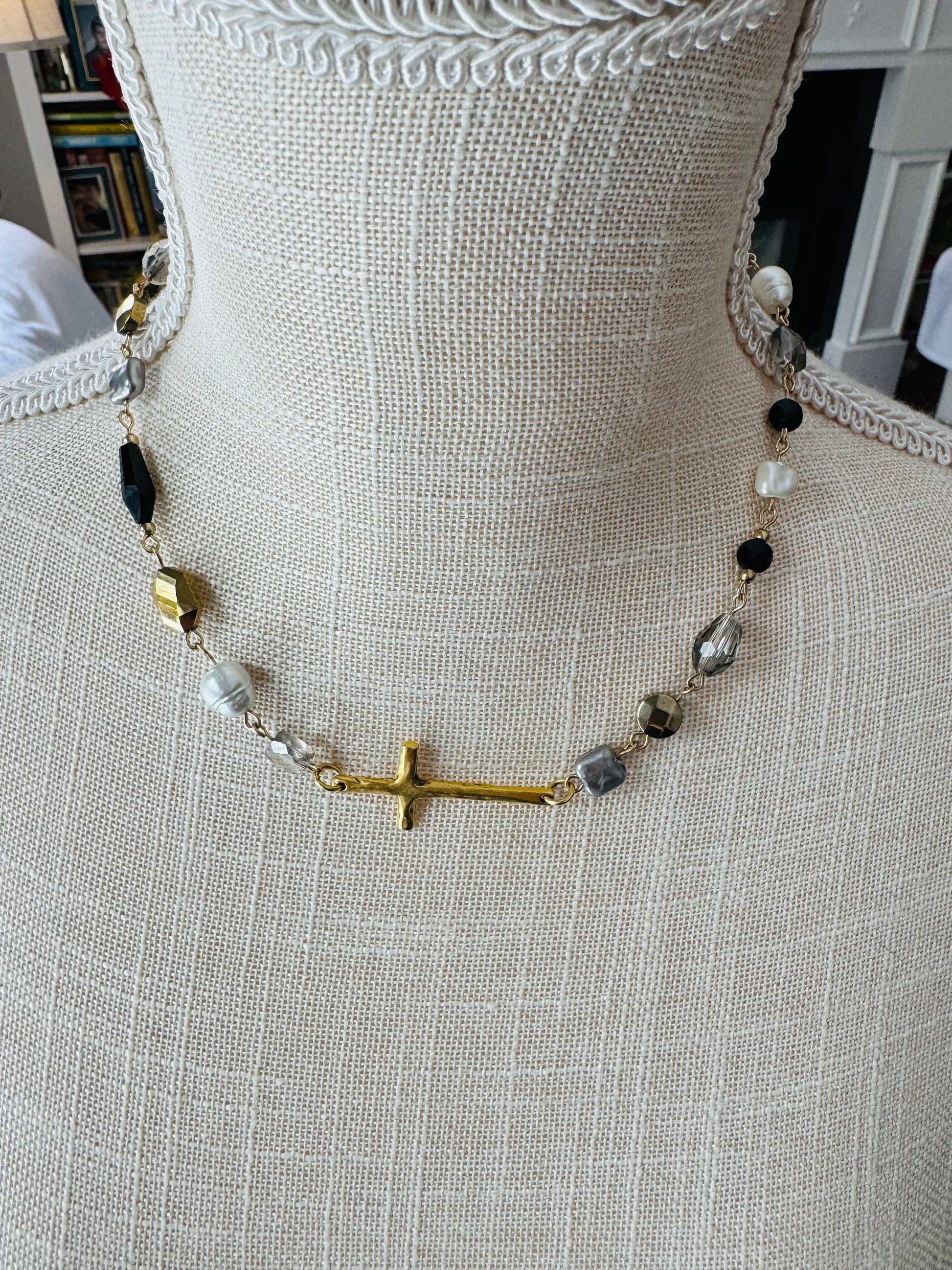This Vintage Glass Pearl&Crystal Mixed Rosary Necklace Featured with Her ‘East to West’ Skinny Cross is ready for Shipment.