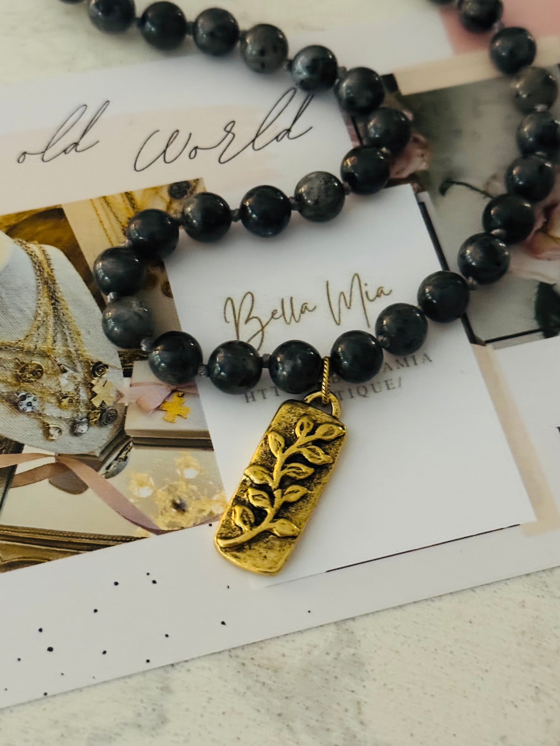 Hand-knotted labradorite 16 1/2 inch beaded necklace with her beautiful vine flower pendant.