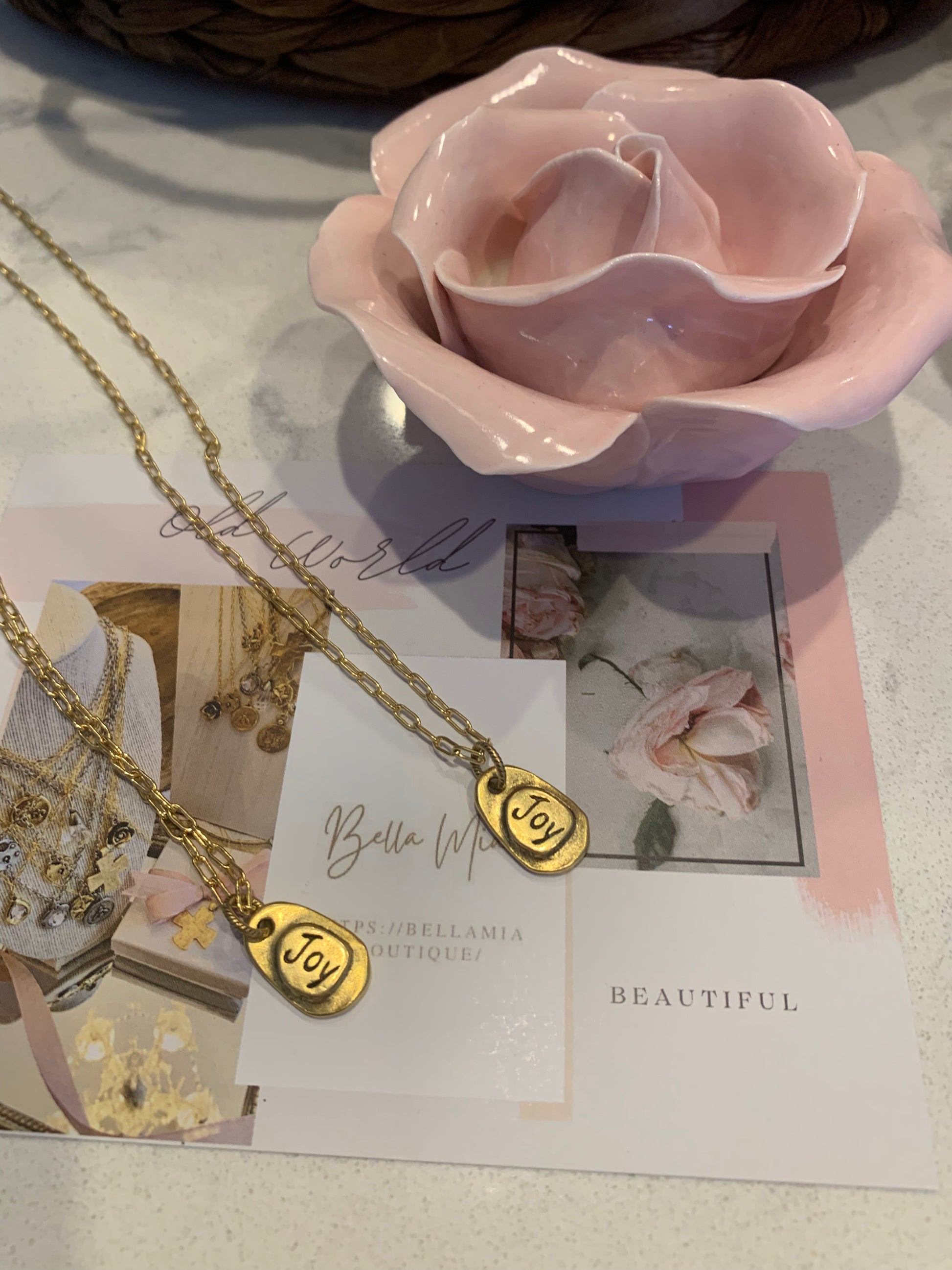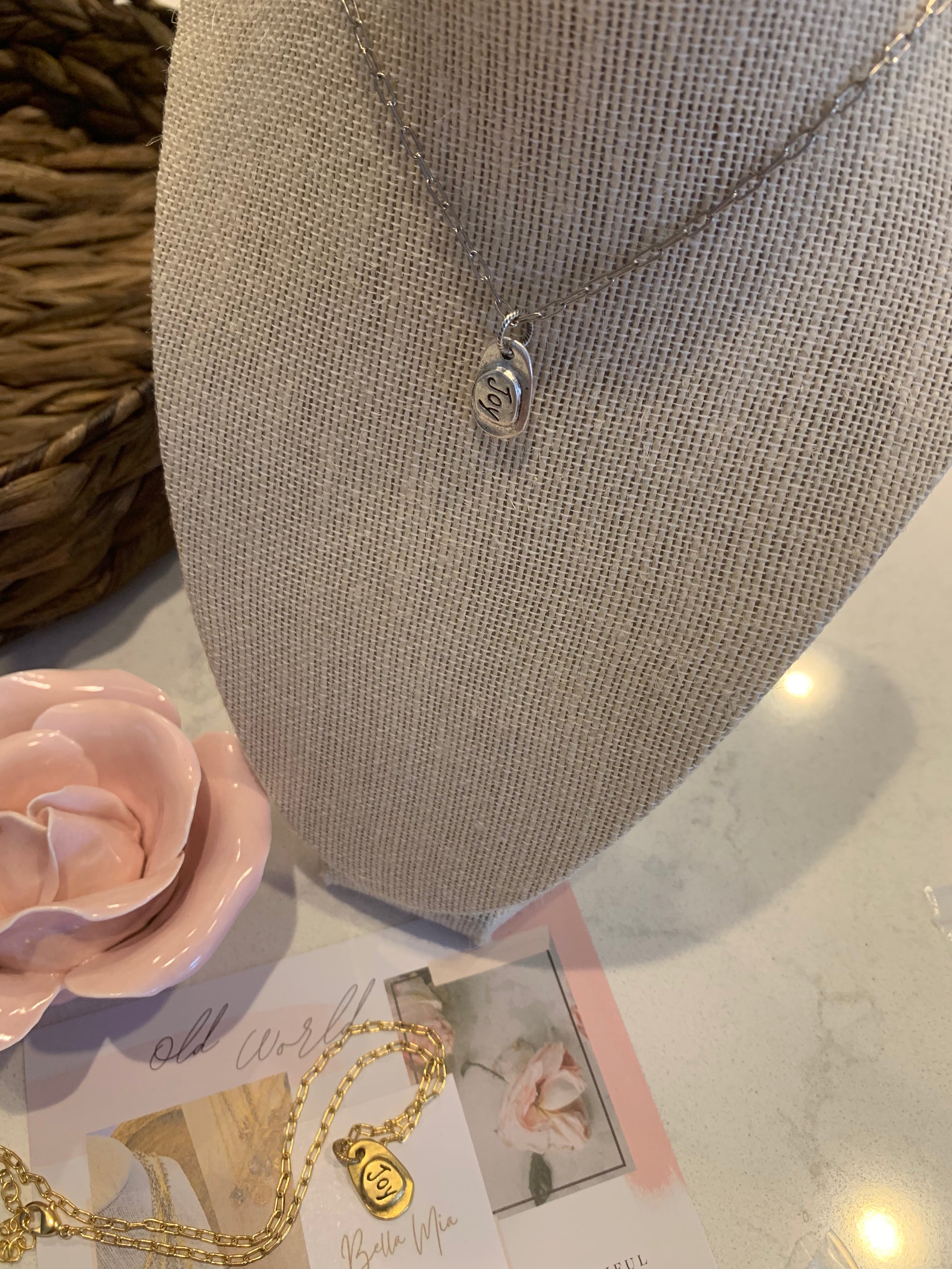 This Beautiful Joy  Pendant Dipped in A 12kAntiqued Gold and or Antiqued Pewter presenting in it's old world patina.
