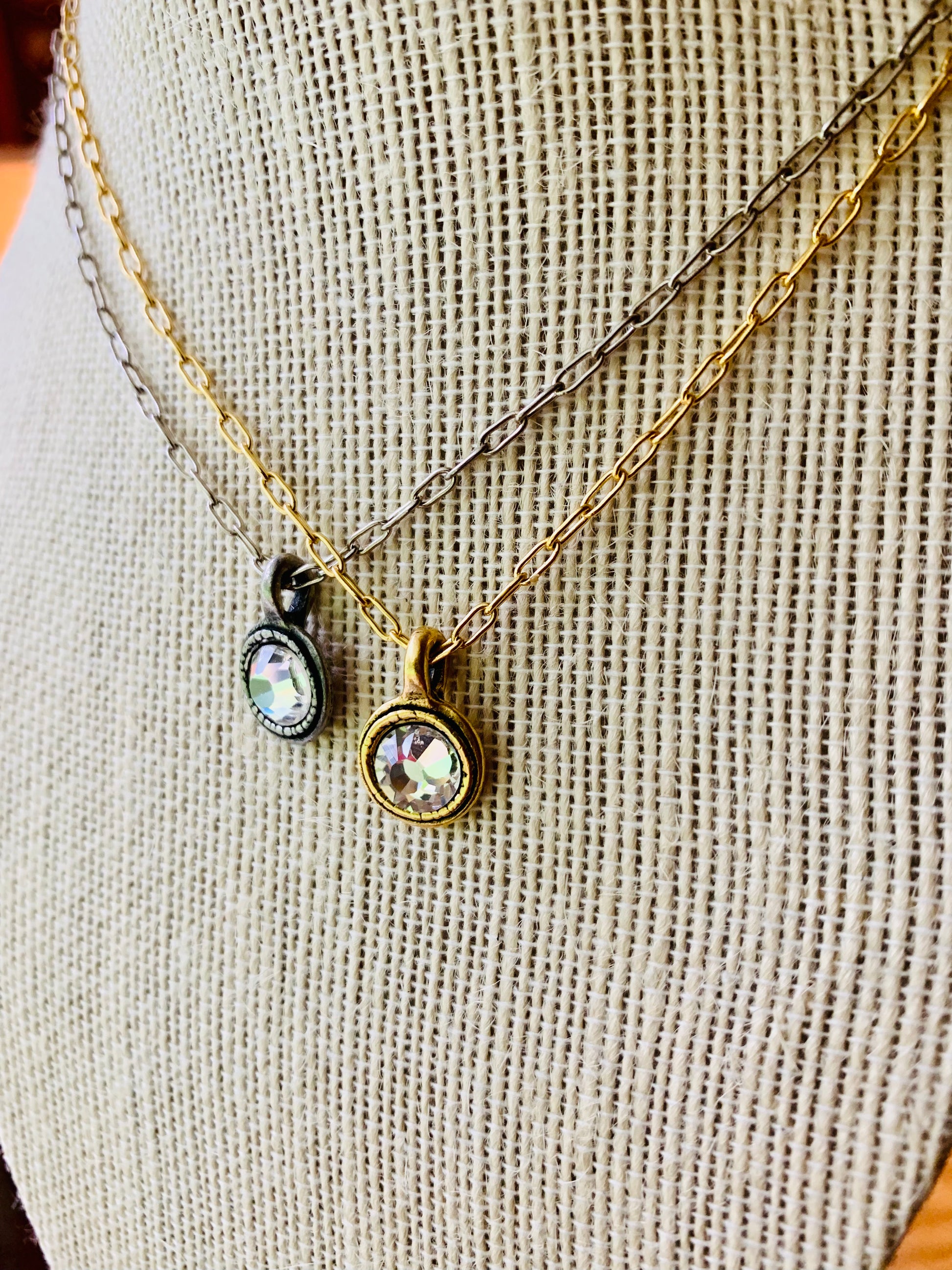 This Radiant Round Swarovski Crystal Set In Antiqued 12k Gold Pewter Is Ready To Be showcased For Any Occassion for the Woman With Style! Beautiful All on her own Or Stack Her with Your Favorite Pearls Or Your Chunky Gold chain for A Magnificent Ensemble!
