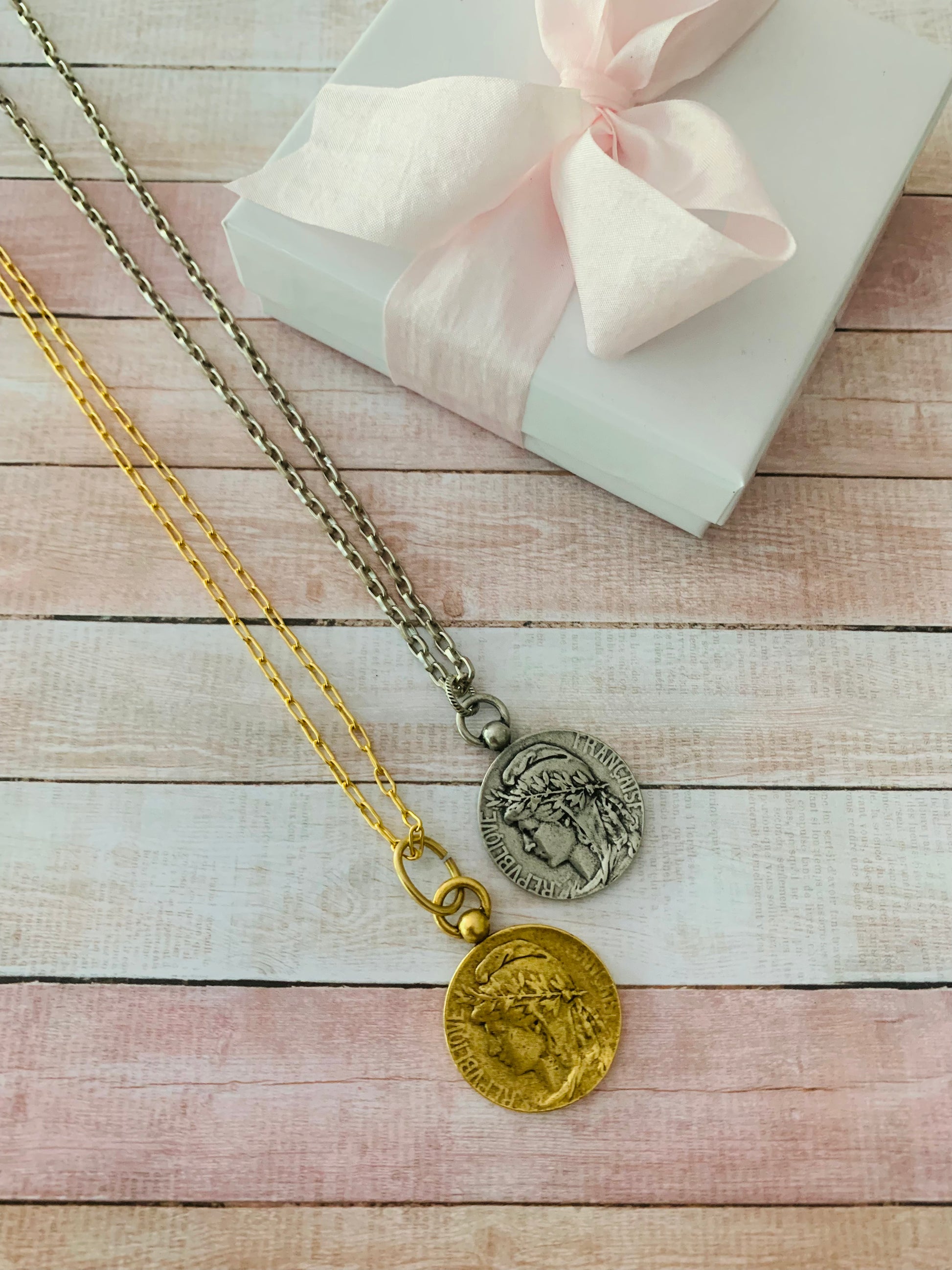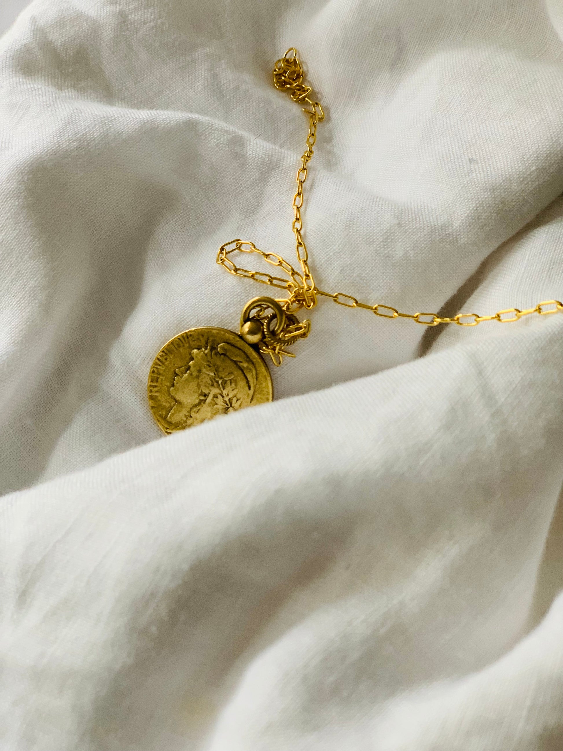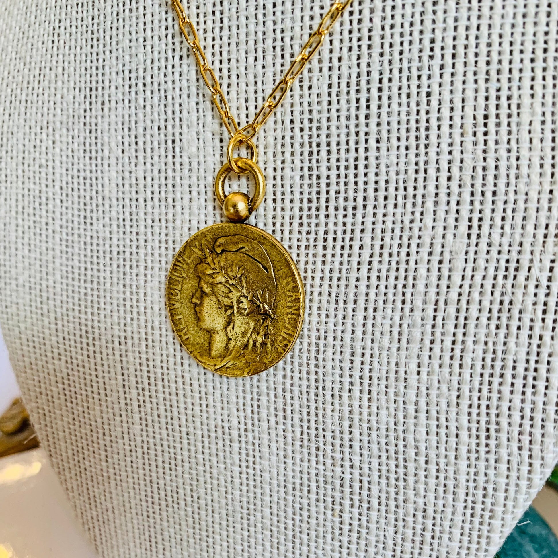 Beautiful Old French Marianne Replica,Pewter, dipped in Antiqued 12k Gold Pendent. 'Republique Francaises' Stands for Liberty,Equality& Reason.