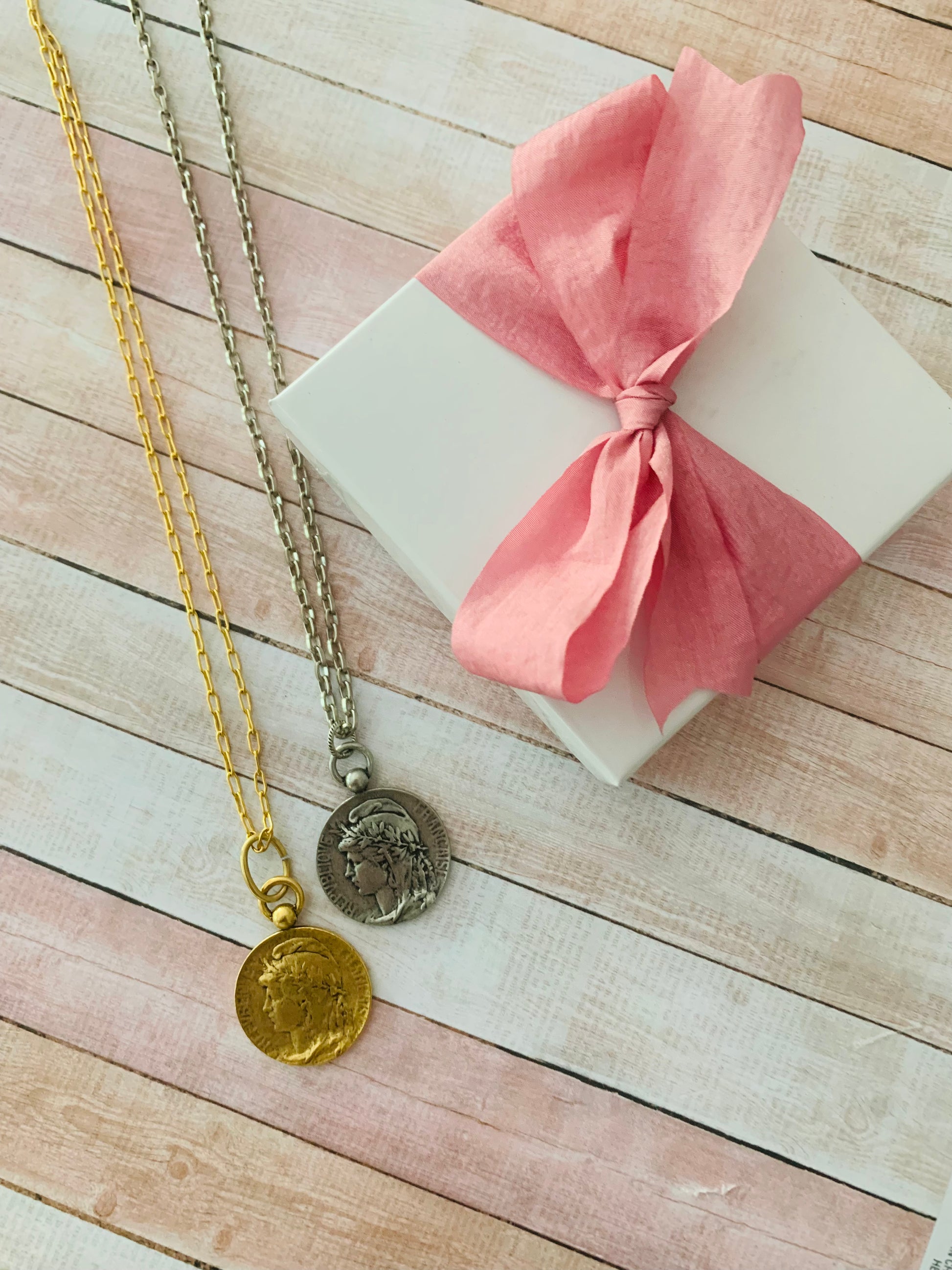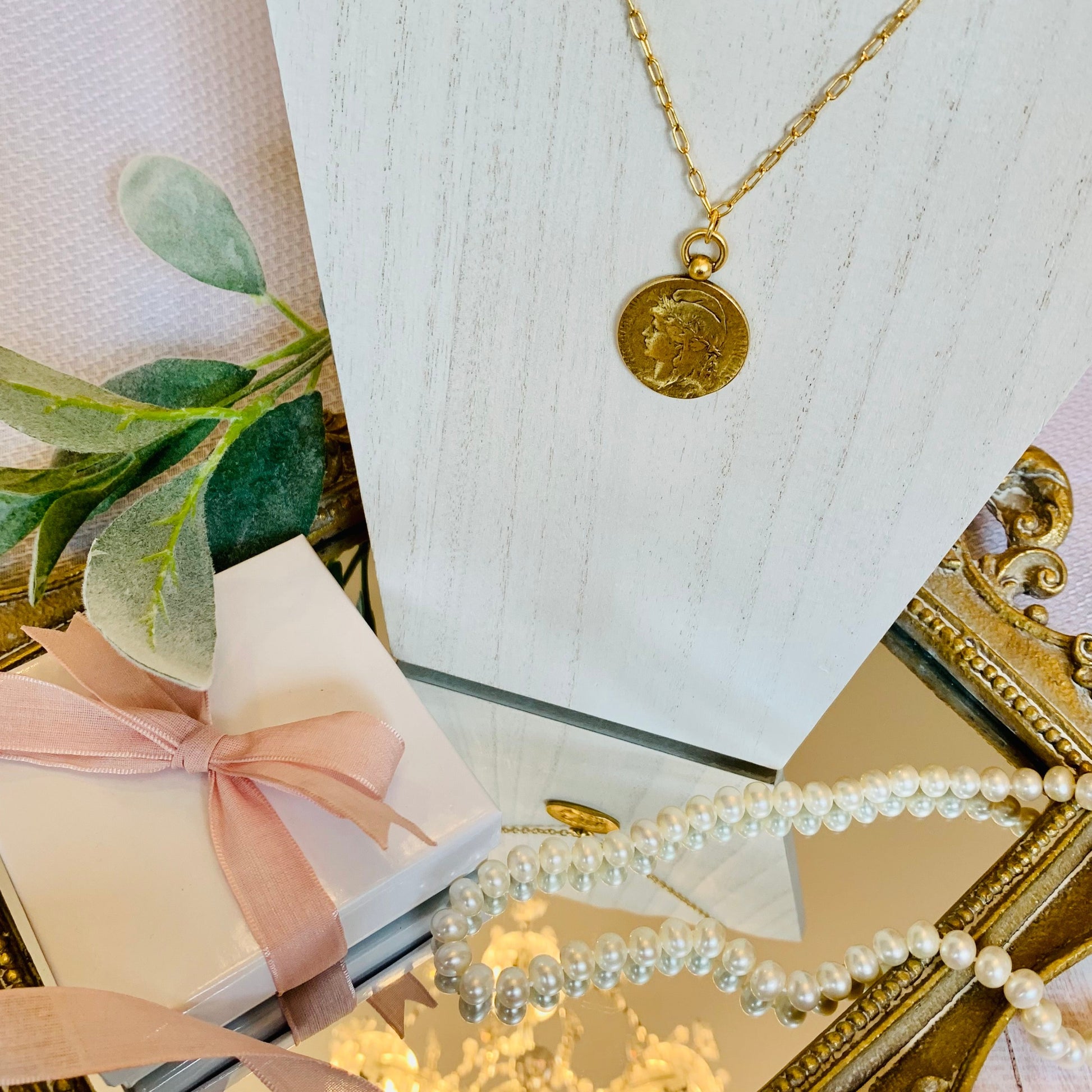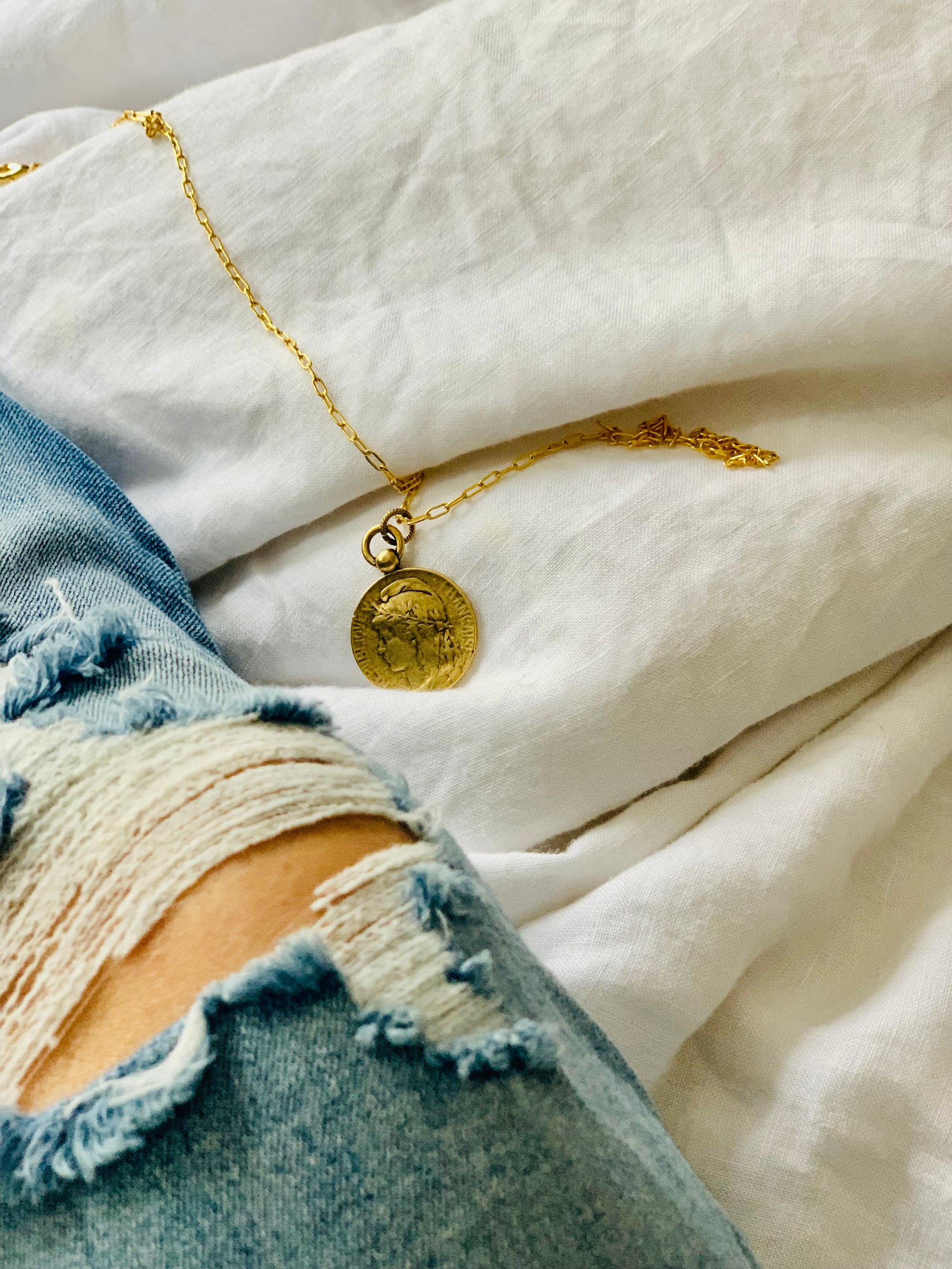 Beautiful Old French Marianne Replica,Pewter, dipped in Antiqued 12k Gold Pendent. 'Republique Francaises' Stands for Liberty,Equality& Reason.