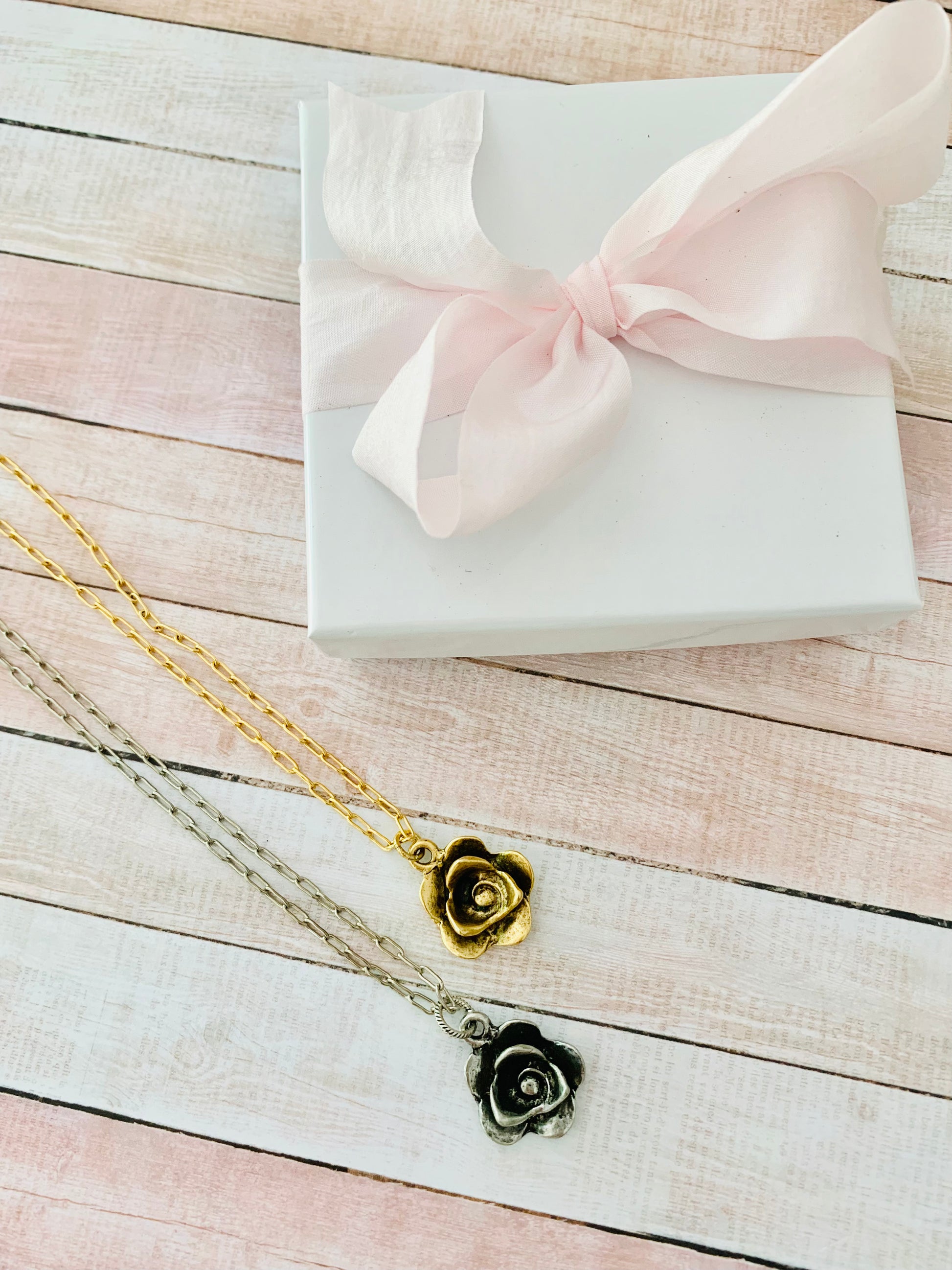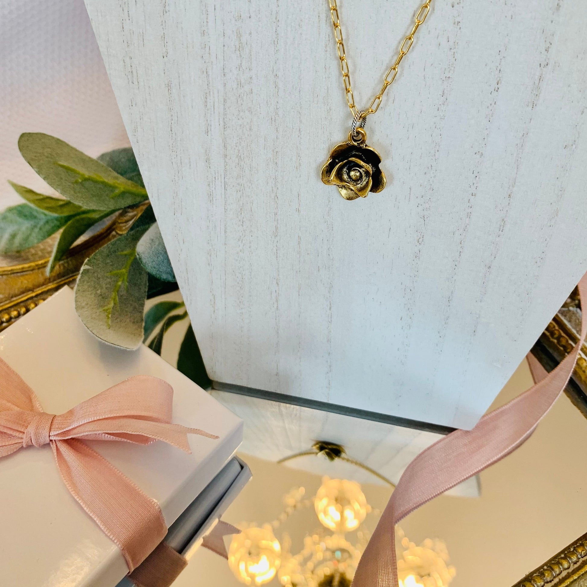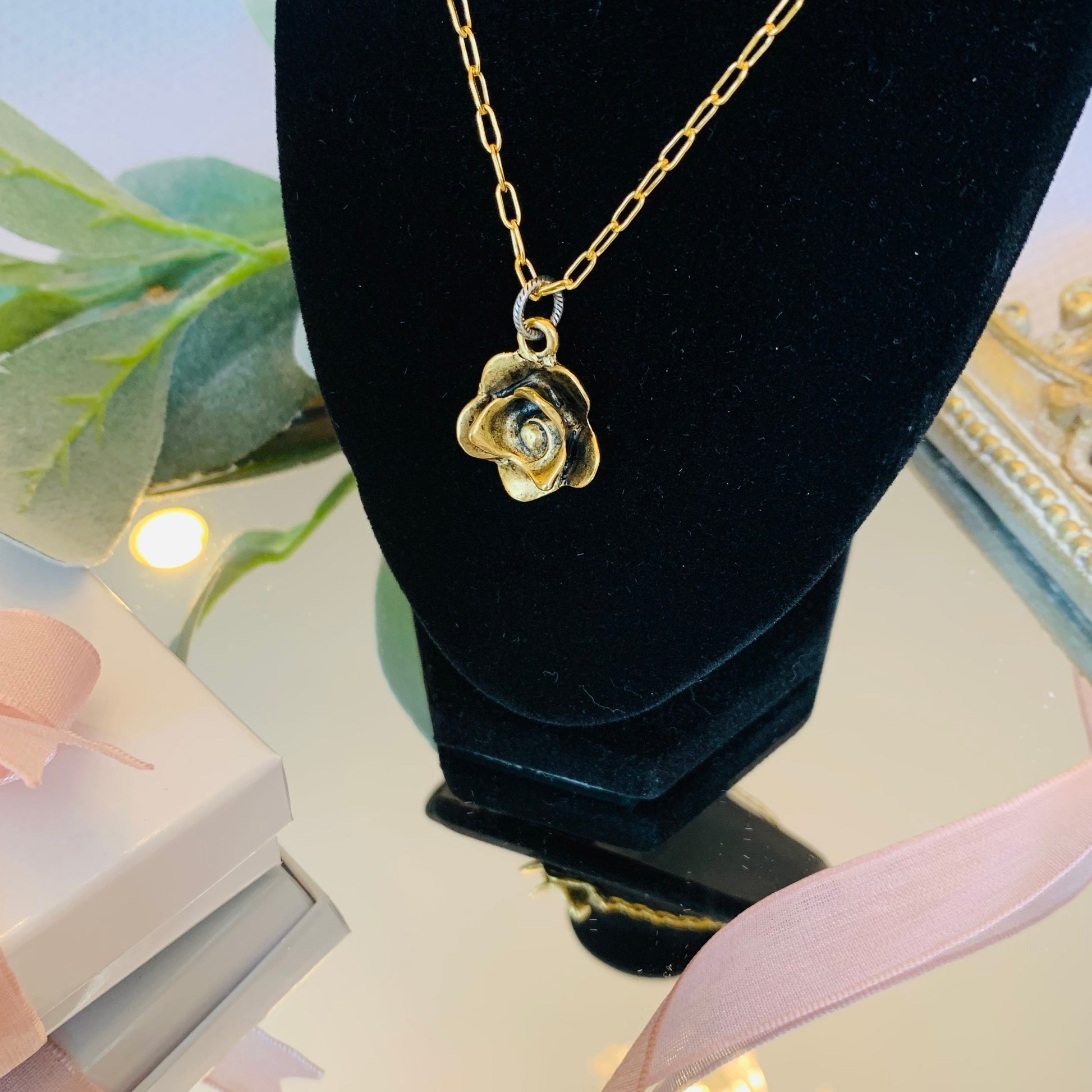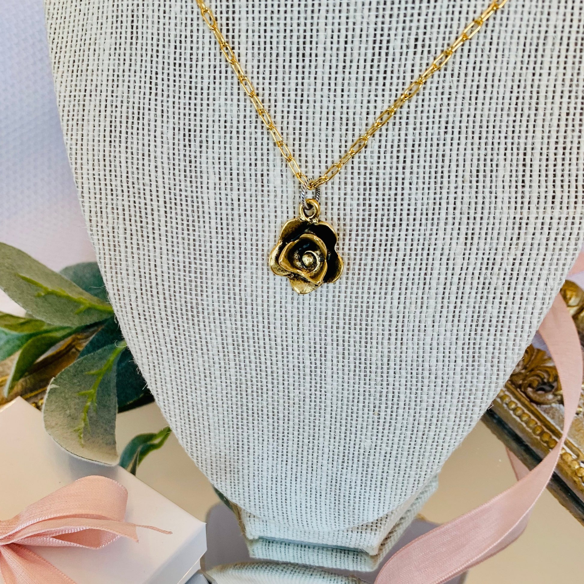 Charming 3D Rose Pendent Necklace that will sure to Enchant with this antiqued 12K Gold & Silver Heirloom.