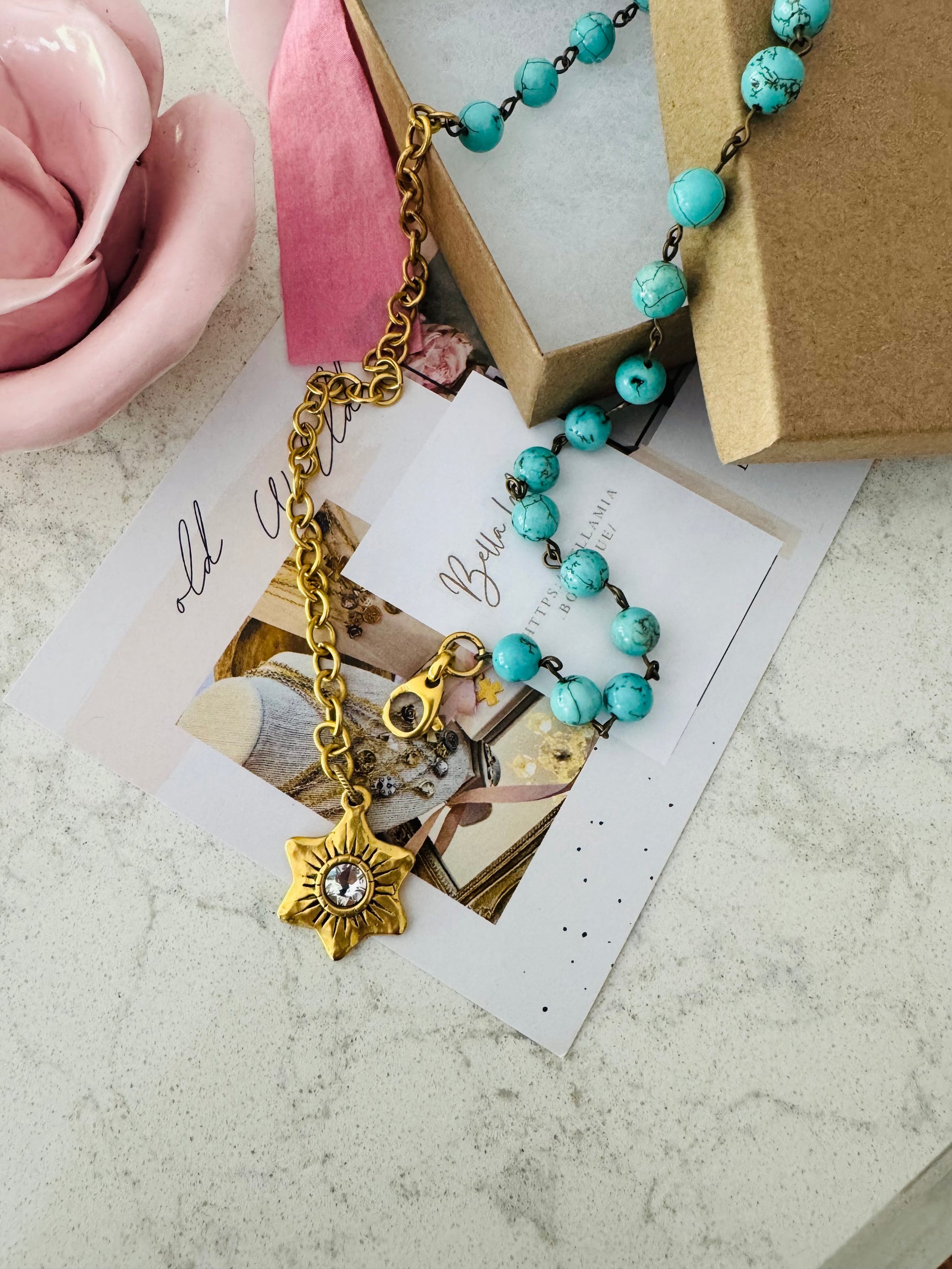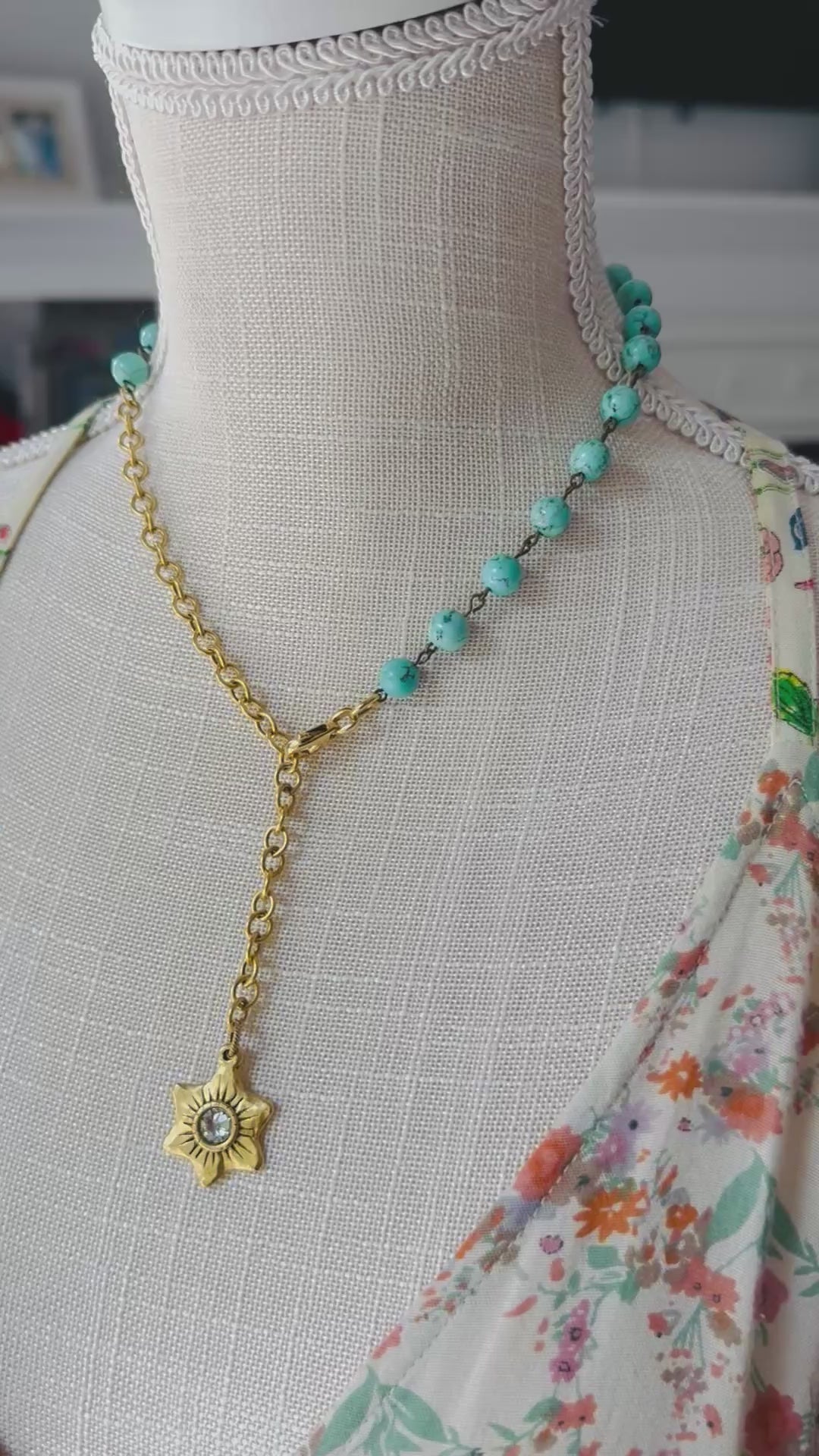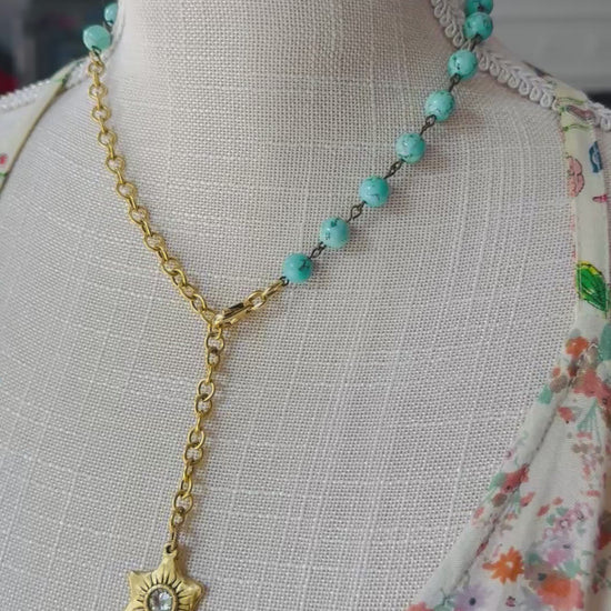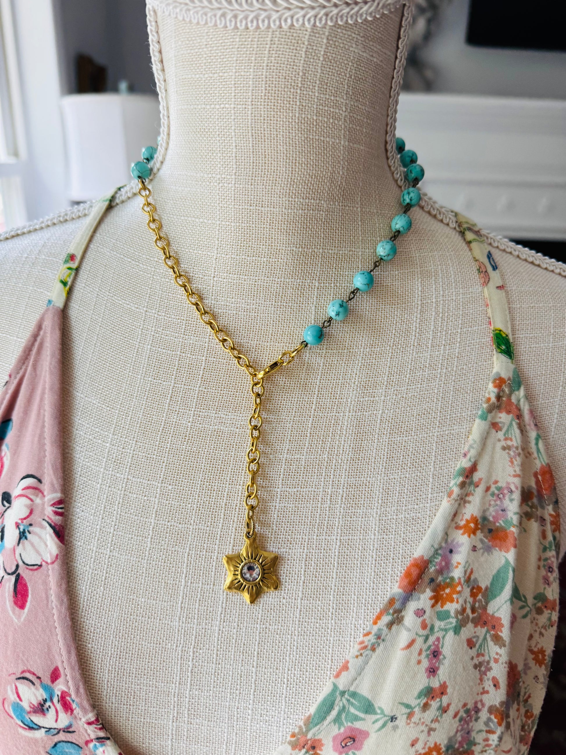 This Turquoise Swarovski Star ‘Lariat’ Necklace is your next Summer Statement Piece .