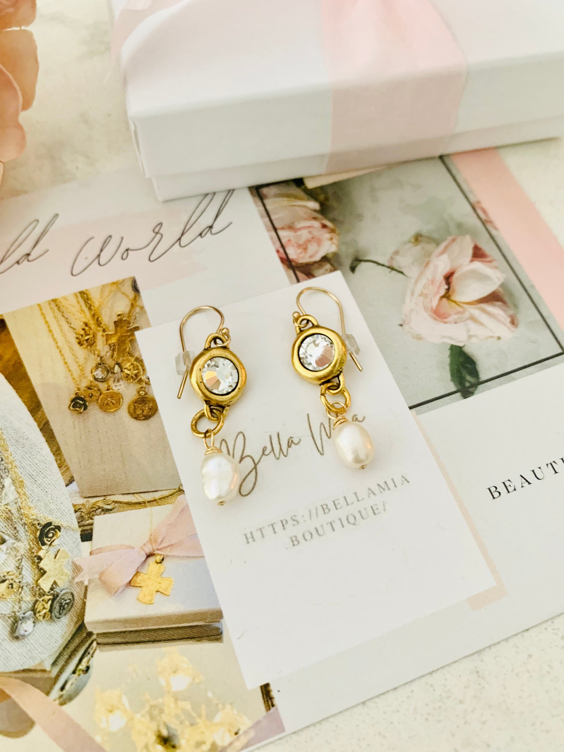 Dainty sparkle of Radiant Swarovski Crystal & Pearl Earrings straight from our studio. Champagne is optional.
